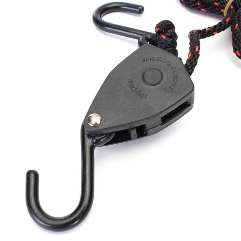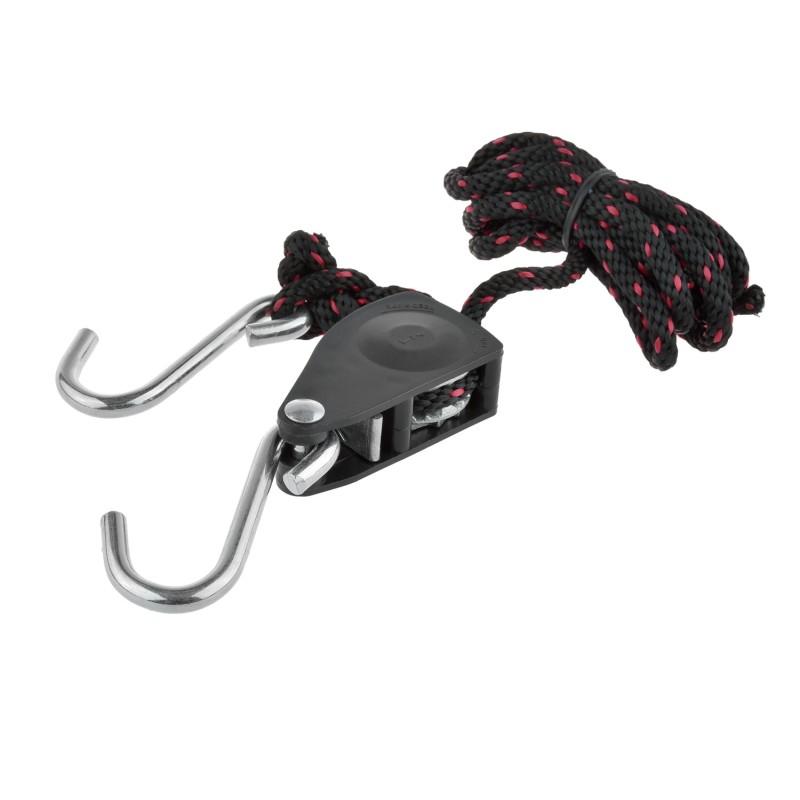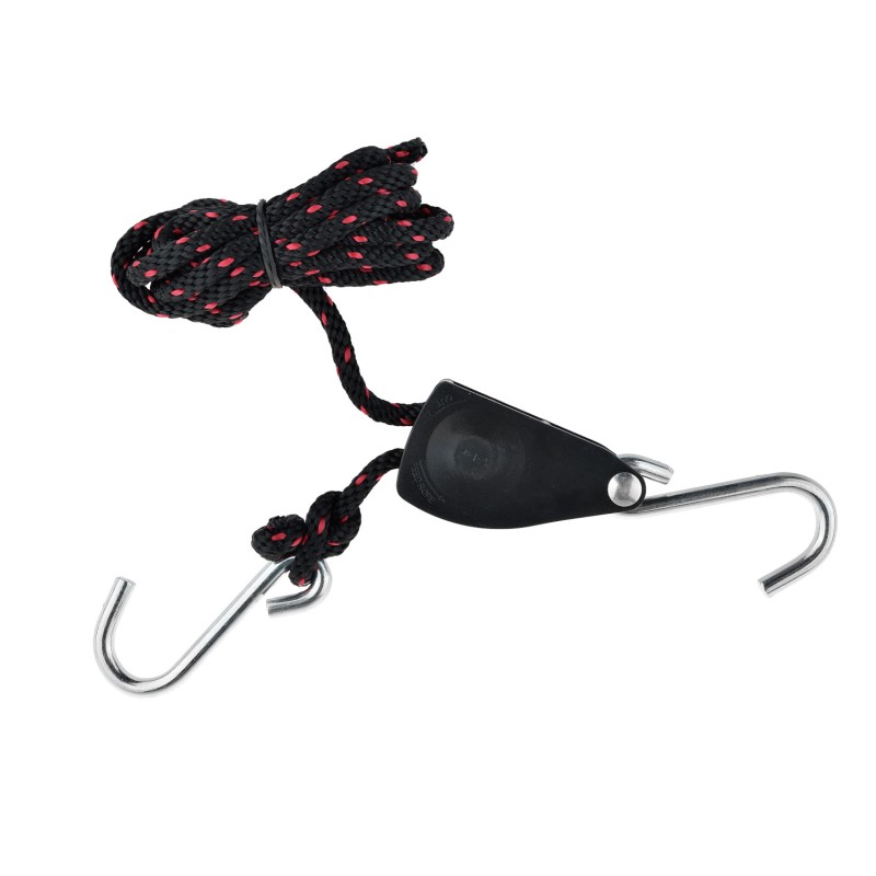 Accrochez les deux crochets et tirez sur l'extrémité libre de la corde pour un maintien sûr et serré.