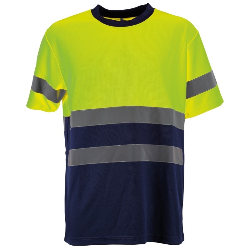 T-shirt haute visibilité avec des bandes réfléchissantes.