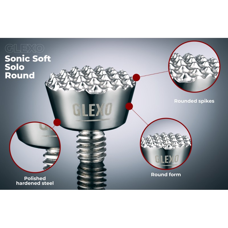 Le Glexo Sonic Soft est fabriqué en acier au carbone de haute qualité. Pour garantir une haute dureté et une résistance à l'usure, chaque produit est trempé dans un environnement sous vide.
