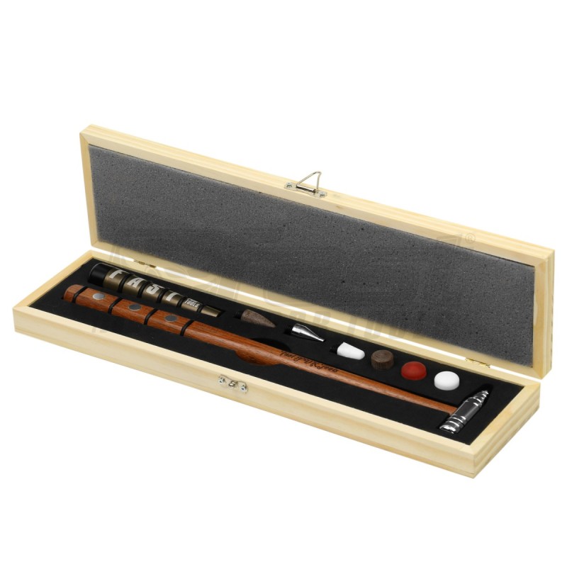 Le kit comprend également deux pointes en téflon, deux pointes en celeron, une pointe en PU et une pointe en acier. Le tout dans un coffre en bois unique pour ranger vos outils.