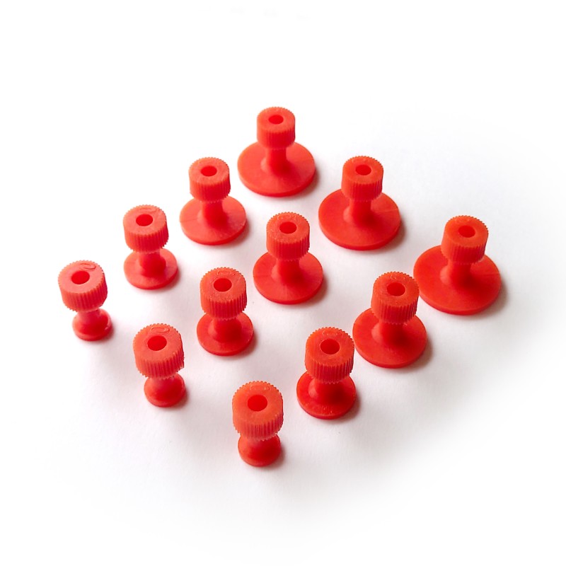 L'ensemble comprend 3 pièces de chacune des quatre tailles de languettes proposées dans la série de languettes de colle OF.