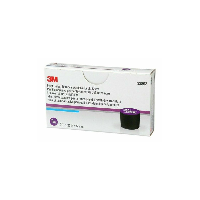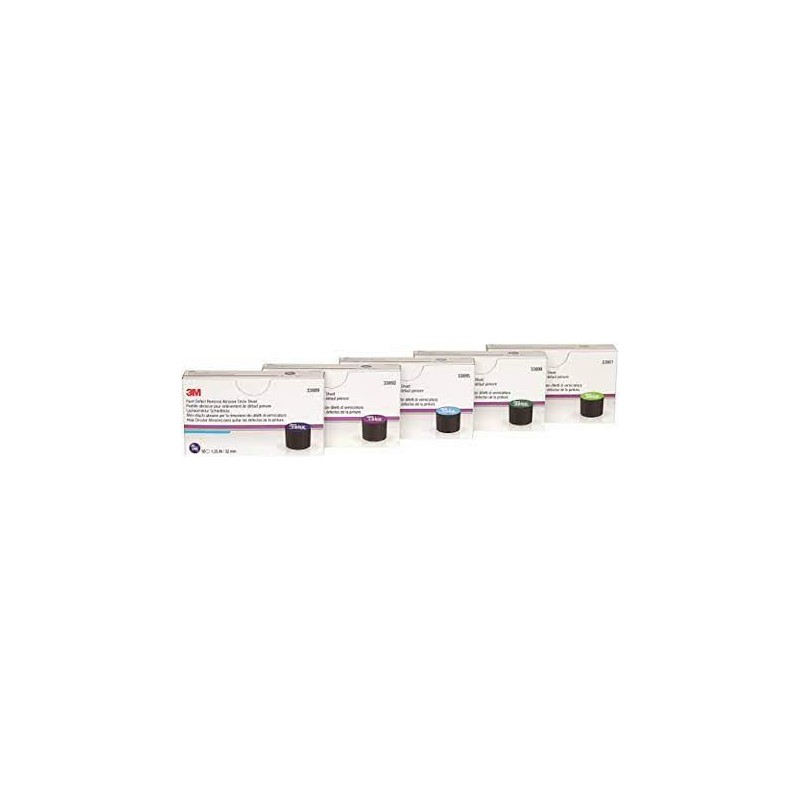 La feuille abrasive de retrait des défauts de peinture 3M™ est un abrasif petit et durable pour enlever les défauts de peinture et autres imperfections à la main, sans avoir à poncer, compacter et polir des panneaux entiers. Dotée de notre abrasif en oxyde d'aluminium à coupe rapide et durable, le cercle de 32 mm avec son film mince se fixe sur des cylindres de ponçage à main spécialement conçus pour un ponçage rapide et efficace directement au bout de vos doigts.