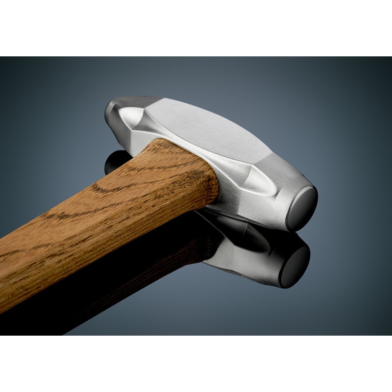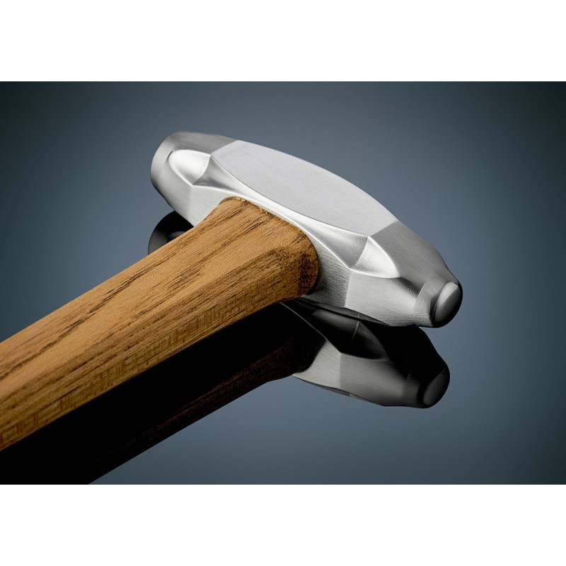 La partie en métal est en acier trempé, les parties frappantes sont polies à un éclat miroir. Les surfaces latérales de la partie métallique sont plates et peuvent être utilisées pour aplanir le métal à l'aide de noyaux, ce qui vous permet d'augmenter la vitesse de travail.