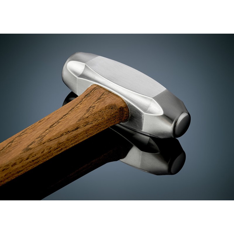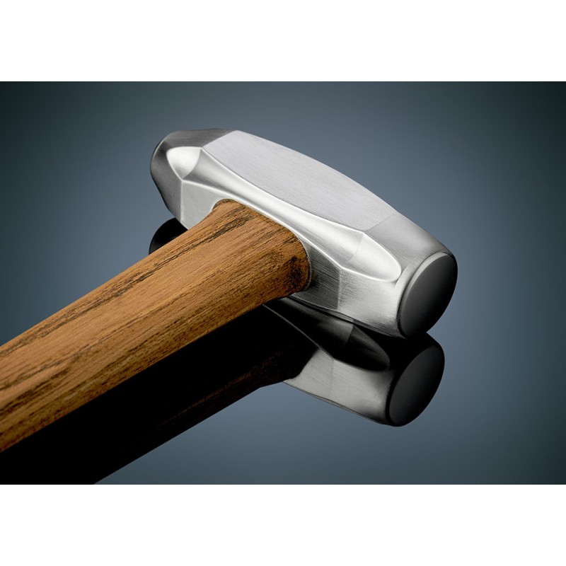 Le manche est fabriqué en bois d'élite, offrant une apparence agréable, une surface tactile plaisante et un poids optimal pour le travail. La forme du manche du marteau de mélange a une extension pour faciliter la prise, ce qui permet de réduire la charge sur l'articulation du poignet pendant l'utilisation. Le manche possède des faces orthogonales formées pour empêcher la torsion dans la main et améliorer le contrôle pendant le travail.