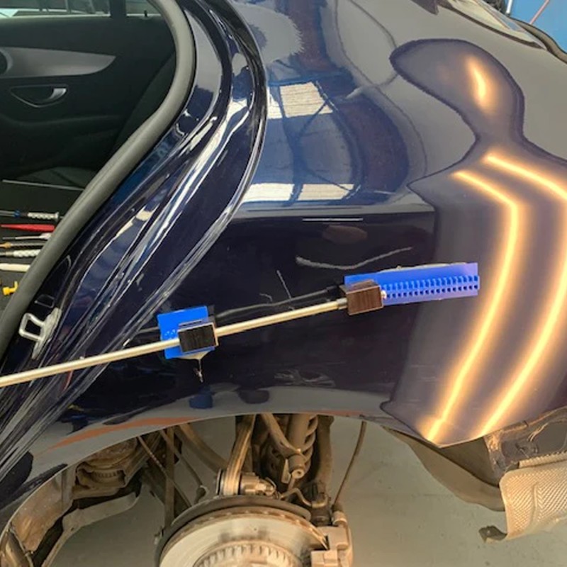 Le KECO LTT (Outil de Tension Lateral) fournit aux techniciens une tension latérale pour améliorer le flux métallique pendant une réparation par traction de colle. La libération de la tension avec un mouvement latéral des zones de couronne favorise le soulagement nécessaire lors du tirage de grosses bosses et des dommages dus à des collisions sur des panneaux, des portes, des joints et des lignes de carrosserie. Combinez le LTTTM avec le K-Beam®, le K-Bar® ou un autre outil GPR premium de KECO. Recommandé avec la colle PDR de haute résistance de KECO pour tirer les bosses les plus profondes de presque tous les métaux utilisés dans la composition des véhicules.