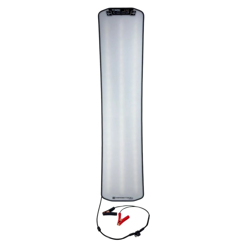La lampe est alimentée par un câble en spirale non amovible de 1,3 mètre de long. L'extrémité du câble a un connecteur à bullet avec des pinces crocodile pour connecter la lampe à la batterie.