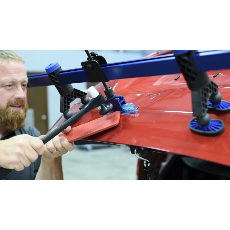 Le levier de pont KECO K-Beam® fournit la puissance contrôlée et le levier nécessaires pour tirer de grandes bosses des panneaux, des portes, des coutures et des lignes de carrosserie. La pression de traction soutenue permet aux techniciens une opportunité mains libres de voir la bosse sous différents angles, puis de taper et d'aplatir les couronnes en conséquence.